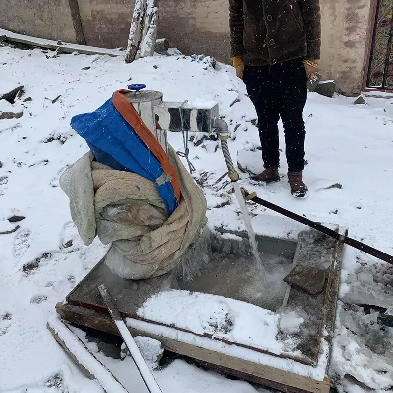 Электротермическая водоразборная колонка для плавления льда представляет собой специально разработанное и изготовленное оборудование для забора воды на открытом воздухе в холодных регионах. В течение долгих зимних месяцев, когда наружная температура очень низкая, конечные точки водоснабжения, такие как трубы, краны, клапаны и т.д., чрезвычайно подвержены замерзанию, что приводит к трудностям с водоснабжением. Традиционные методы включают усиление теплоизоляции и даже размораживание с помощью открытого огня или горячей воды. Однако при длительных низких температурах замерзшие конечные точки водоснабжения невозможно эффективно решить обычными мерами, и это очень хлопотно. Колонка забора воды с электрообогревом для плавления льда, заполненная теплоизоляционным материалом с низкой теплопроводностью, оснащена встроенным саморегулирующимся нагревательным кабелем. Пользователи могут подключить ее к электросети по мере необходимости для плавления льда. Время подключения к сети крайне мало, обычно для плавления льда и поступления воды достаточно 5–10 минут. После поступления воды питание отключается. Благодаря собственной теплоизоляции колонка может оставаться незамерзшей в течение длительного времени (при температуре до -20°C она сохраняет воду незамерзшей до 10 часов). Колонка забора воды с электрообогревом для плавления льда широко применяется в холодных северных регионах Китая и на Цинхай-Тибетском нагорье, полностью решая проблему замерзания воды у местных жителей зимой. Простота эксплуатации, длительный срок службы и удобство обслуживания обеспечивают пользователям отличный опыт использования воды.
